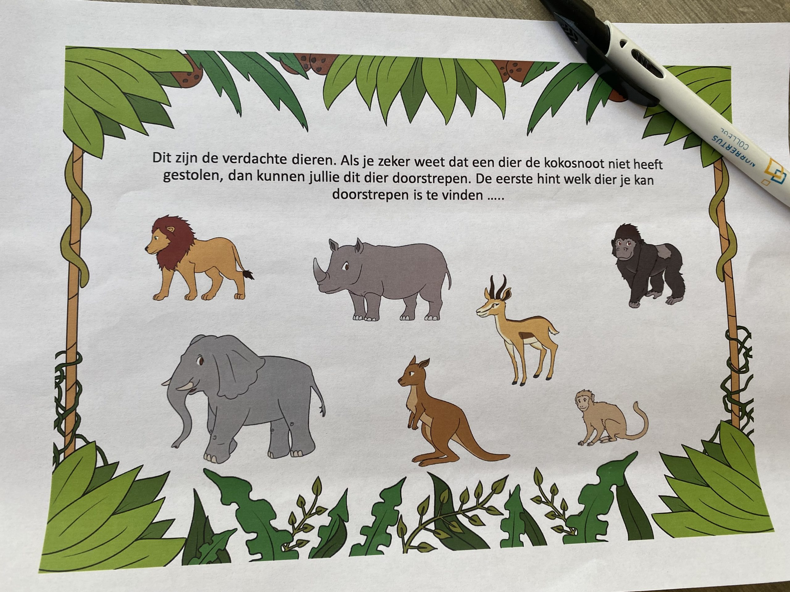 Het verhaal is duidelijk, er is een kokosnoot verdwenen! De dieren willen deze graag terug en roepen hulp in. Gelukkig willen de kinderen maar al te graag helpen en gaan ze op zoek naar de dader. Want wie o wie heeft de kokosnoot toch meegenomen?? Van het spel werd ik direct enthousiast en ik wachtte de perfecte gelegenheid af om het uit te voeren met de kindjes.