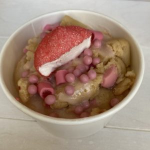 Vooral de laatste sprak de kinderen natuurlijk al enorm aan. Het snoepje bovenop, de roze kleur en de roze balletjes lonken enorm. Naast het cookie dough assortiment verkopen ze nog andere overheerlijke snacks en zelfs verse thee. Dus neem zeker even een kijkje want er is voor ieder wat wils!