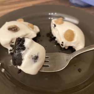 Bentley daarentegen begon te stralen bij de Queen of the Jungle. Deze heeft namelijk een stukje witte lion erin met sticky cookie saus eroverheen. Heerlijk zoet, ik hou er ook zeker wel van.